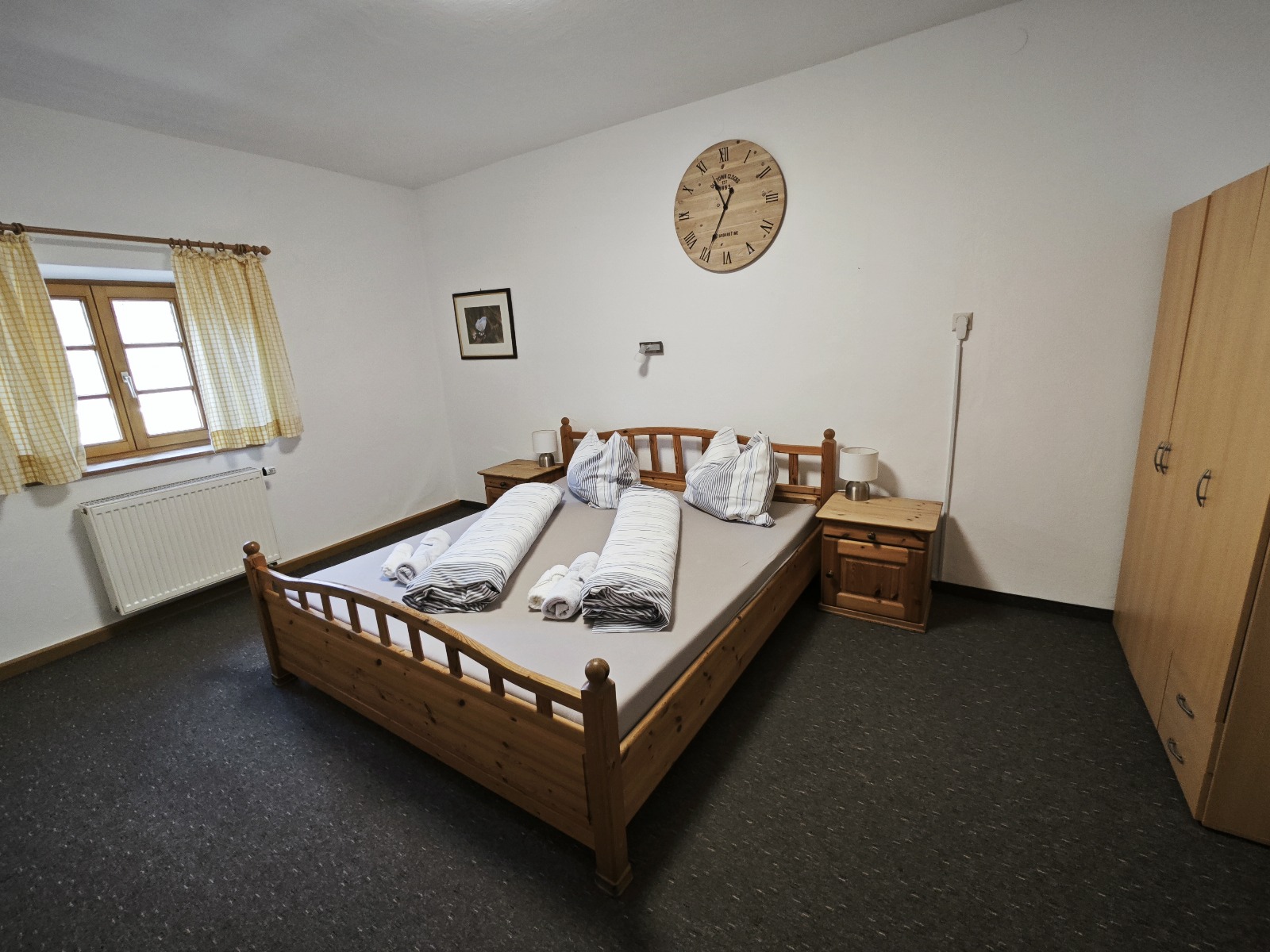 - Frühstück bieten wir nicht an. In unmittelbarer Nähe (Bäckerei, ca. 200 m entfernt, täglich ab 6 Uhr geöffnet) gibt es jedoch eine große Auswahl an Backwaren.